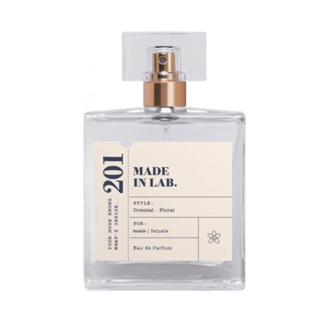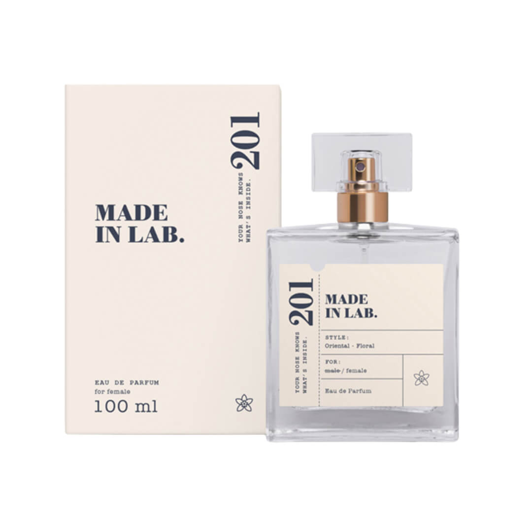 Apa de parfum pentru femei Made in Lab No.201, în format generos de 100 ml, este creată pentru a evidenția feminitatea printr-o compoziție modernă, catifelată și ușor gurmandă. Debutul surprinde prin prospețimea ușor acidulată a rubarbei, completată de eleganța narcisei, oferind un start luminos și rafinat.